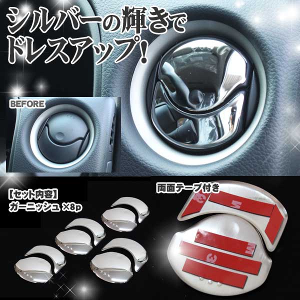 【商品名】 【セット商品】NV350 キャラバン E26 パーツ エアコンダクト メッキ 12Pセット【エアコンリングパネル4P/エアコンダクトパネル8P】 【適合】 NV350 キャラバン E26 【商品詳細】 エアコンダクト周り、吹き出し口にメタルのアクセントをプラス。